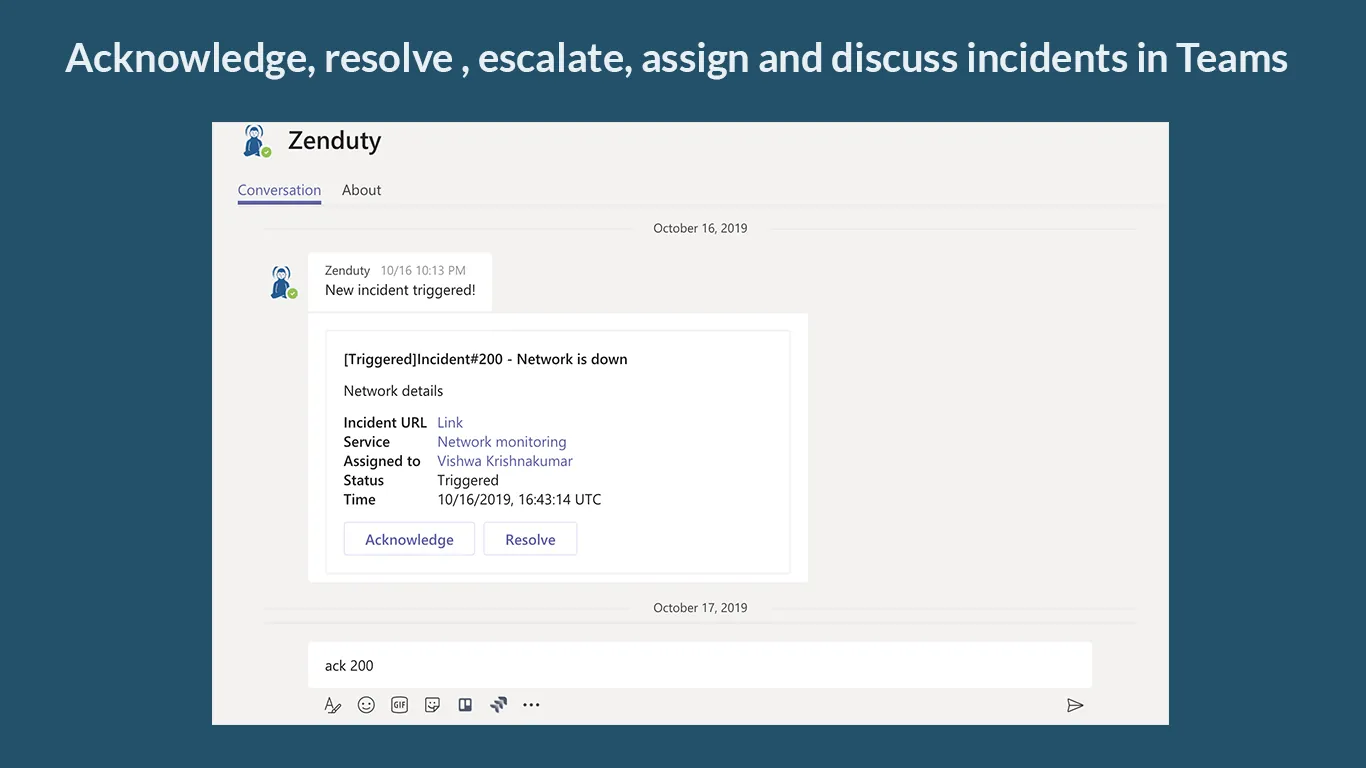 Organizations are realizing the potential of ChatOps for incident management and response. Teams integrate team-communication and incident response processes in one place, making it an incredibly useful tool in war-rooms. Teams can be seamlessly incorporated into incident management workflows and help support teams collaborate, track and manage IT incidents with complete visibility during critical events.