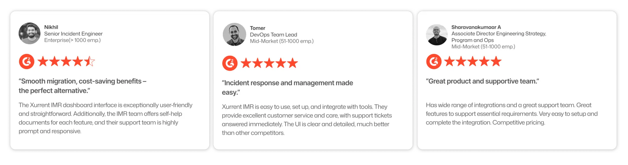 Fast-growing teams rate Xurrent IMR as the best alternative to Pagerduty. Xurrent IMR is an end-to-end incident management tool that helps you improve your MTTA and MTTR by at least 60%. Let's deep dive into features provided: