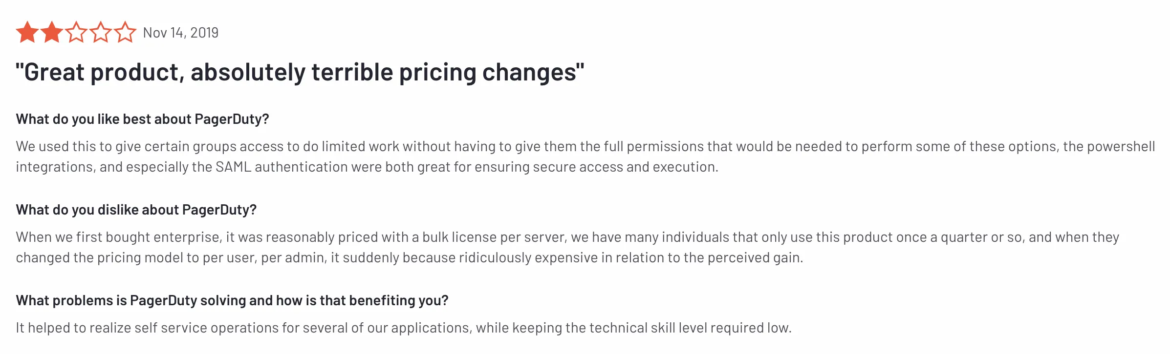 But, with most outdated legacy models come a few constraints and it all comes to "Paying for What You Use" vs. "Paying for What You Might Use". We will touch on that point in detail in the blog. Also, with so many features fitted into PagerDuty, users have called it bloated and pretty expensive for features that they use. Now, the PagerDuty pricing and features are more focused on enterprises making it pretty bloated for new teams and hence, expensive.