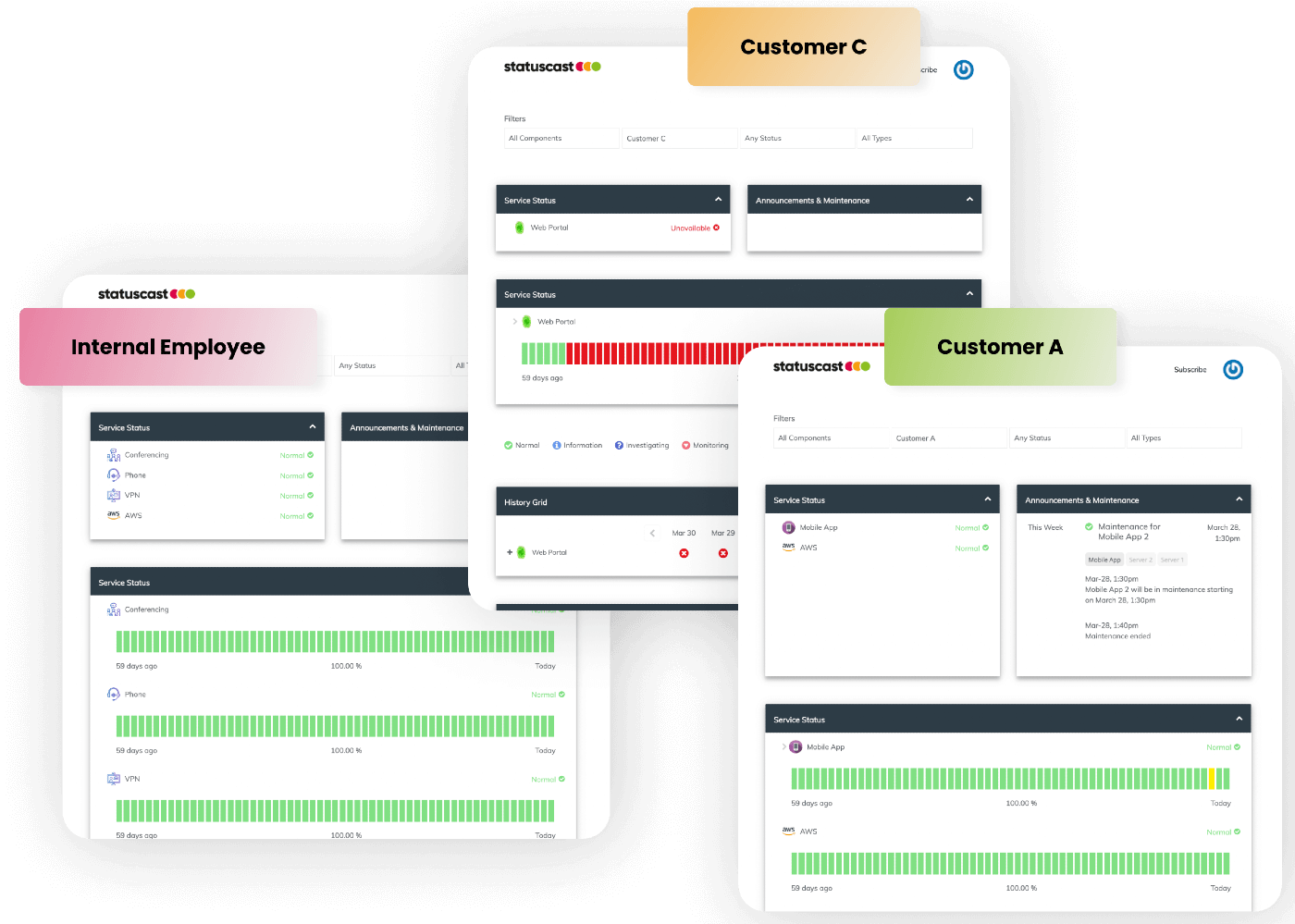 The net result: Customers remain informed during incidents and scheduled maintenance. Support teams experience lower overhead costs while increasing stakeholder trust and confidence.