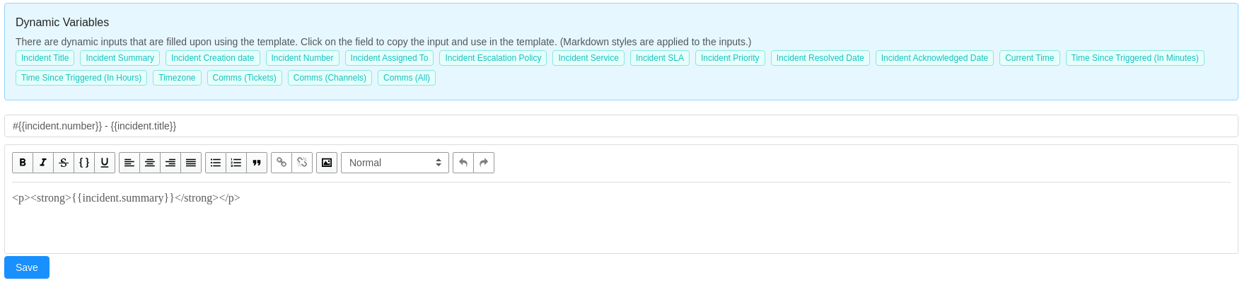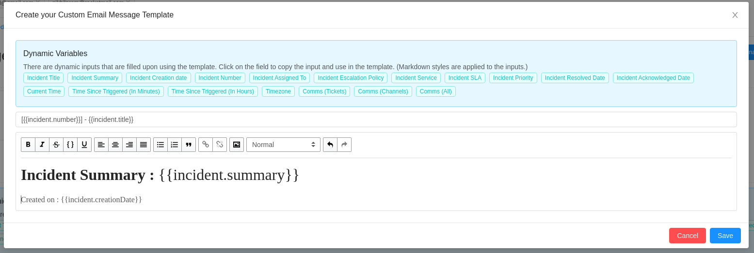 - You can also add Dynamic variables that take information from the incident and auto append it to the outgoing email once the incident is created and Email is sent.