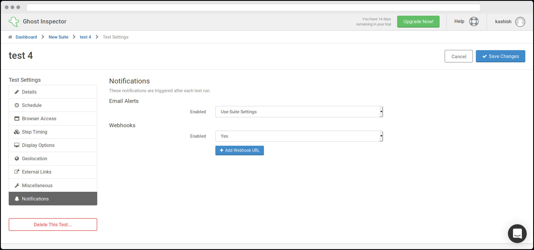 - Log into Ghost Inspector.
