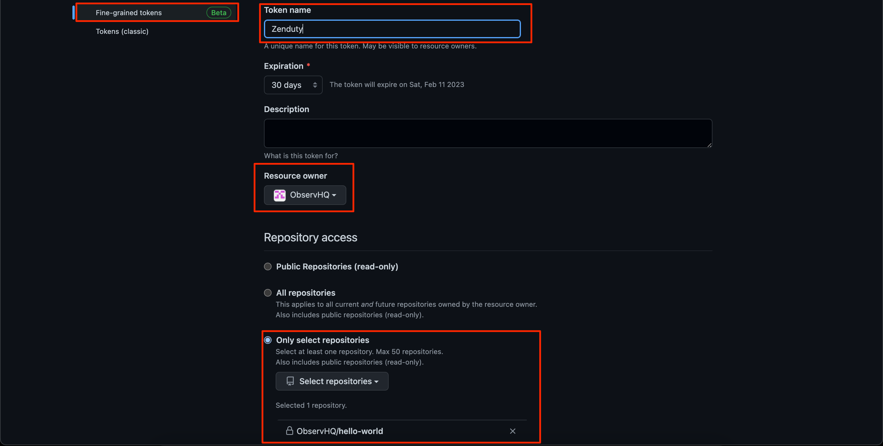 • Note: It's recommended to not select the Repository for which you have already created an Incoming GitHub Integration with Xurrent IMR, as it may result in a cyclic loop.