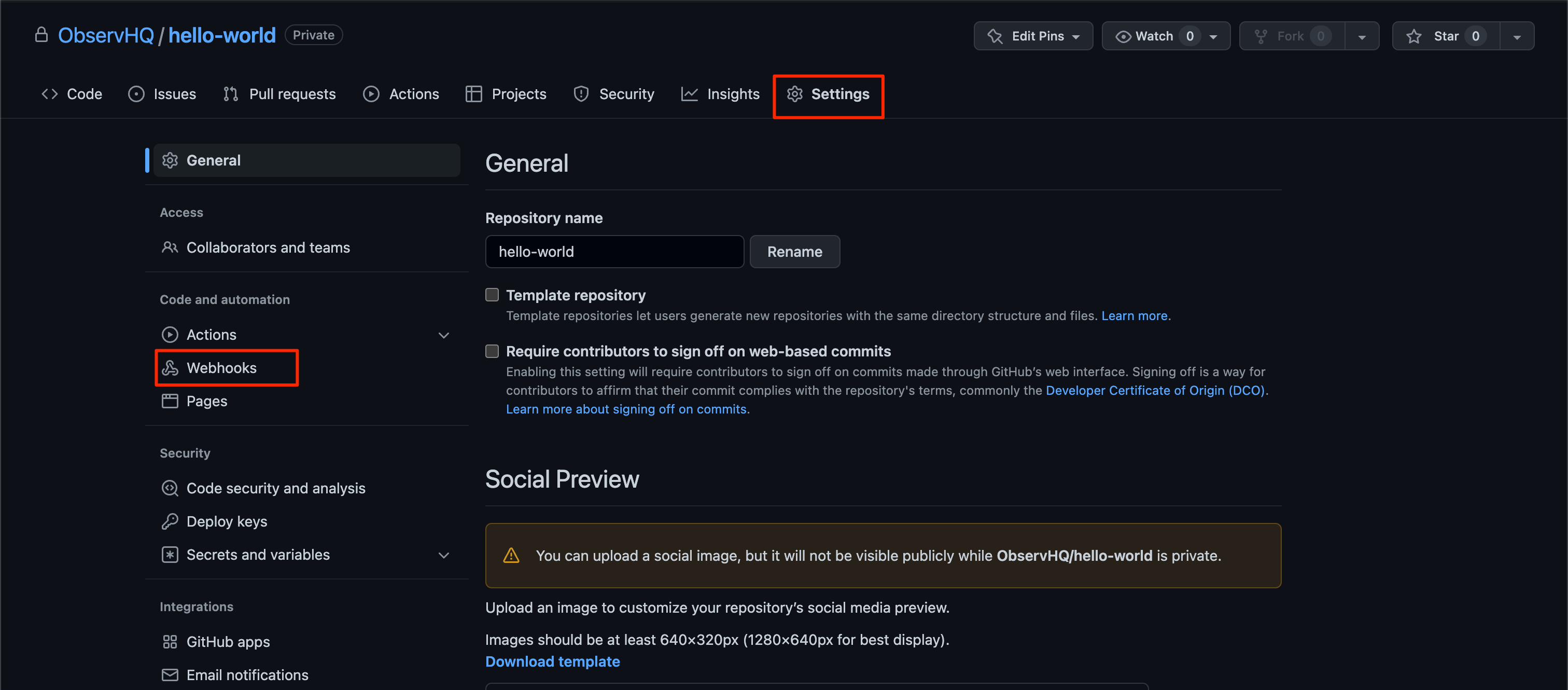 3. From the panel on the left, click on Webhooks. Click on Add Webhook.