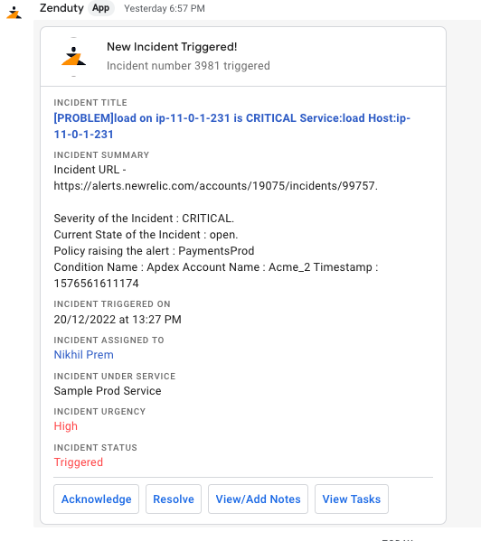 - Alerts about incidents assigned to you will be sent as a personal message to you (based on the notification rules you set up). You can then acknowledge, resolve or assign Xurrent IMR incidents within Google Chat.