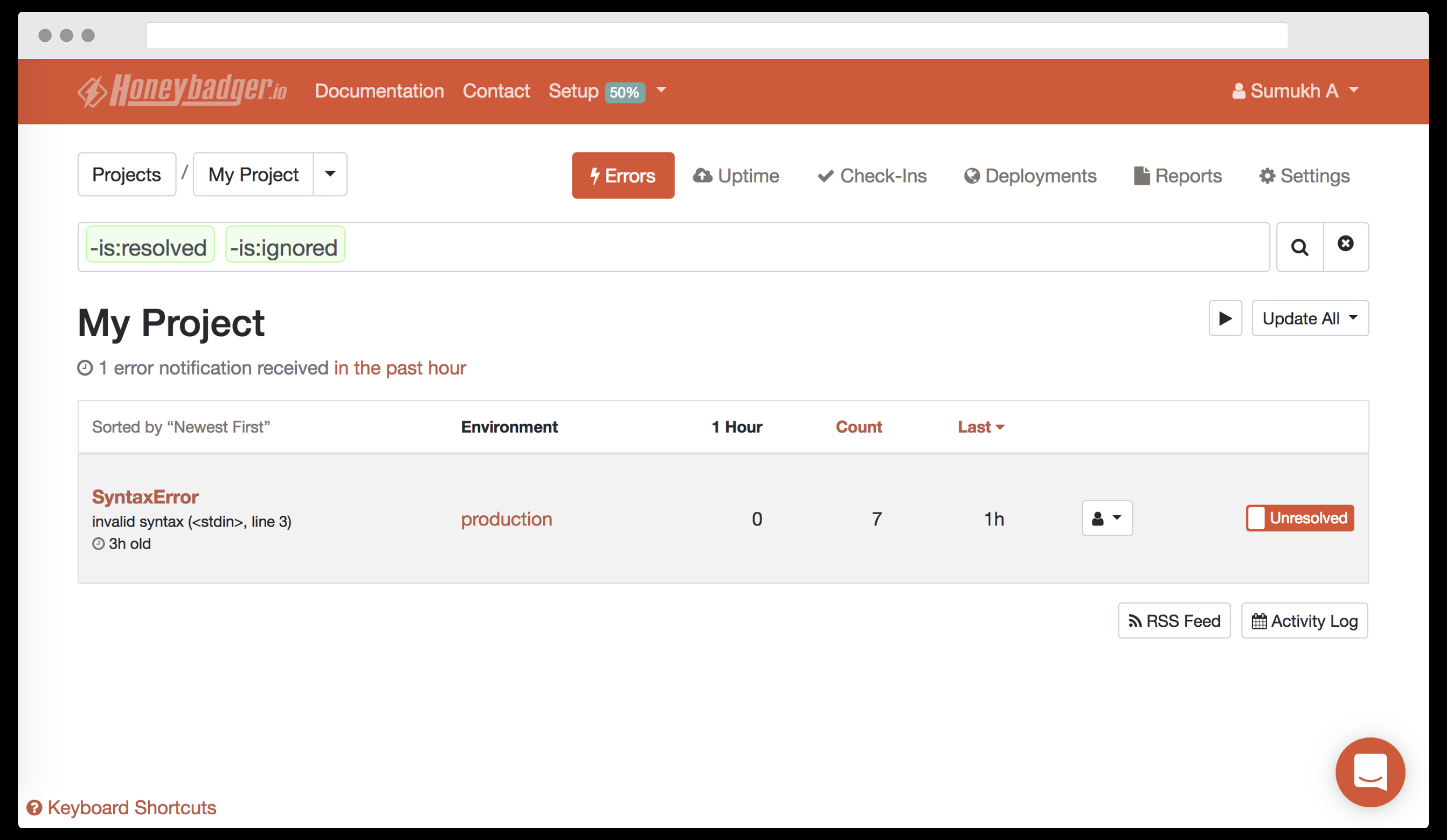 - Login to Honeybadger. Click on Add Project, and give it a name and select a language.