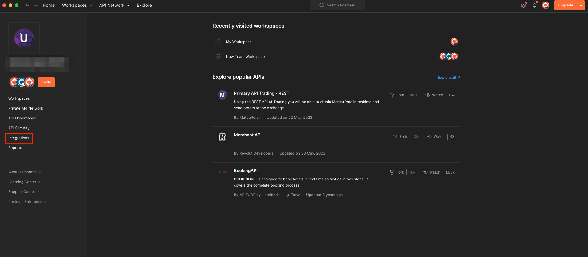 - Login to your Postman dashboard. Navigate to the Integrations section.