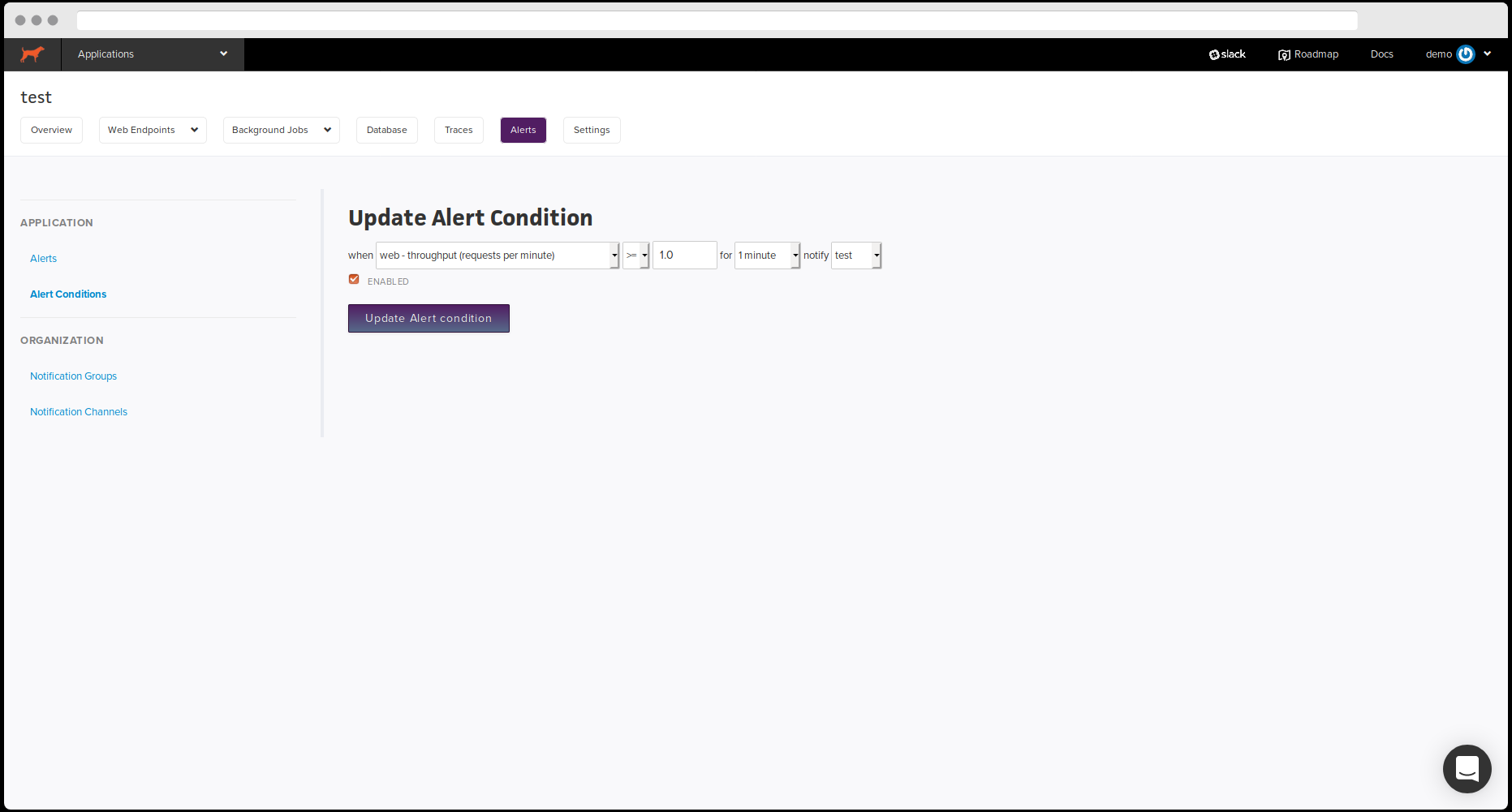 - Go to Alerts > Alert Conditions to set the alert conditions.