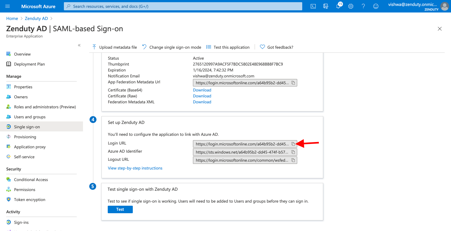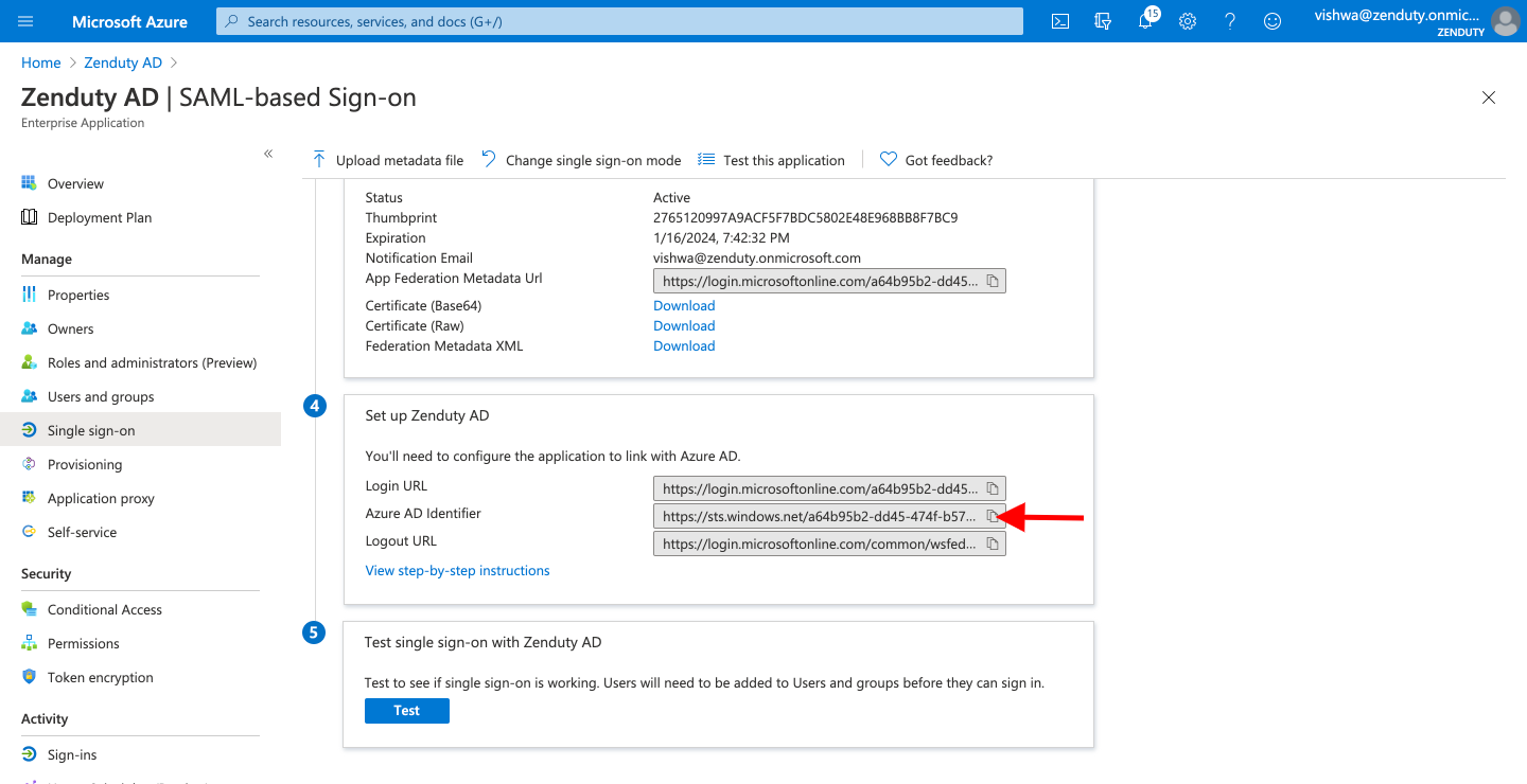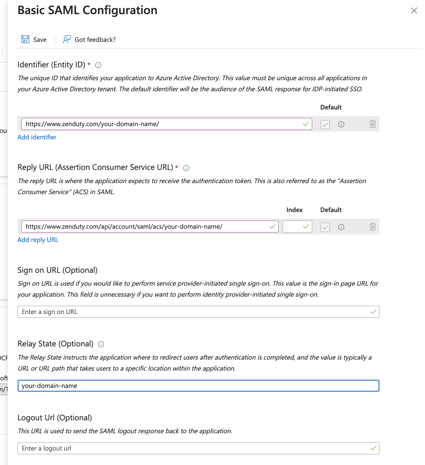 - In the Identifier(Entity Id) input box, enter the value - https://www.zenduty.com/your-domain-name/