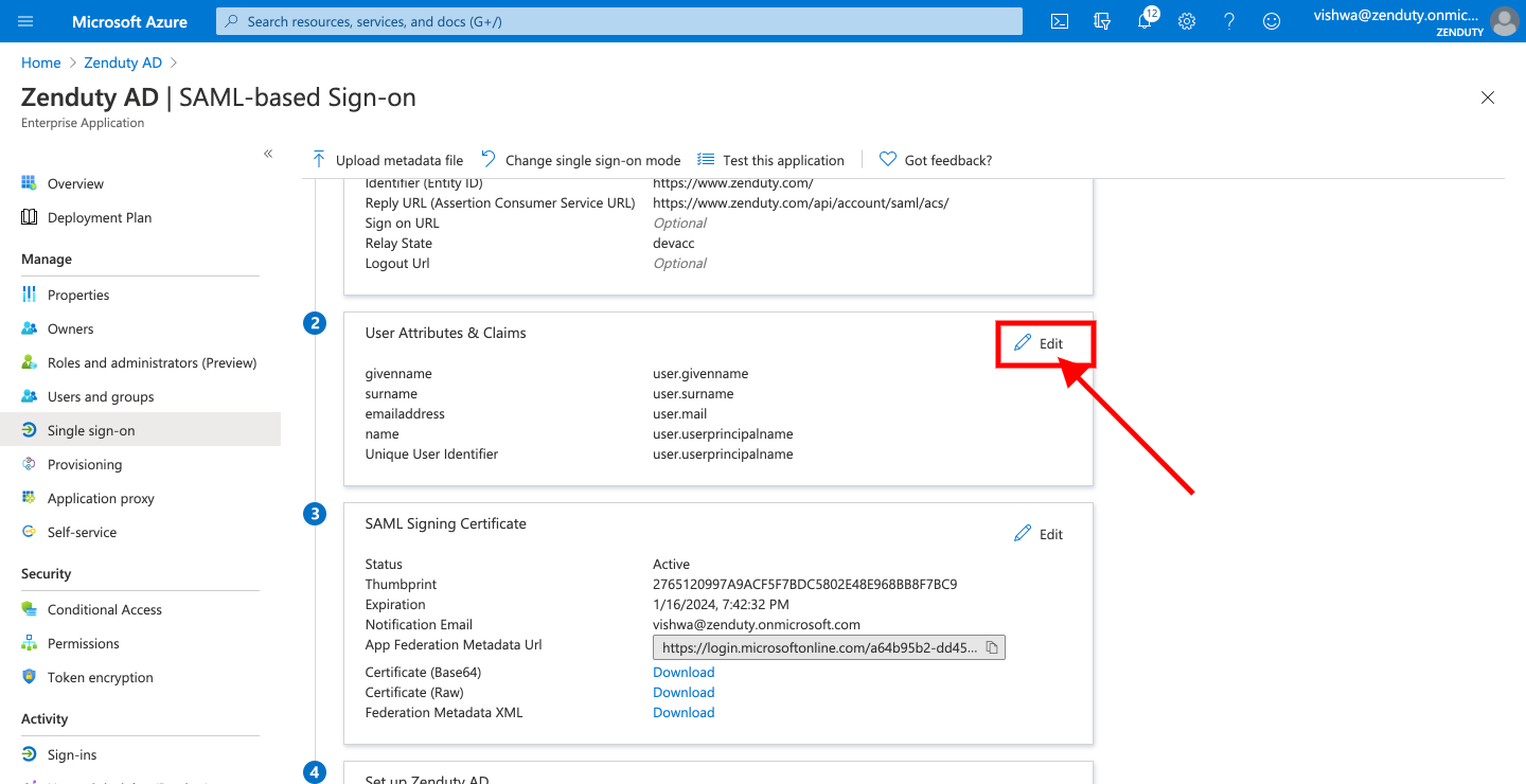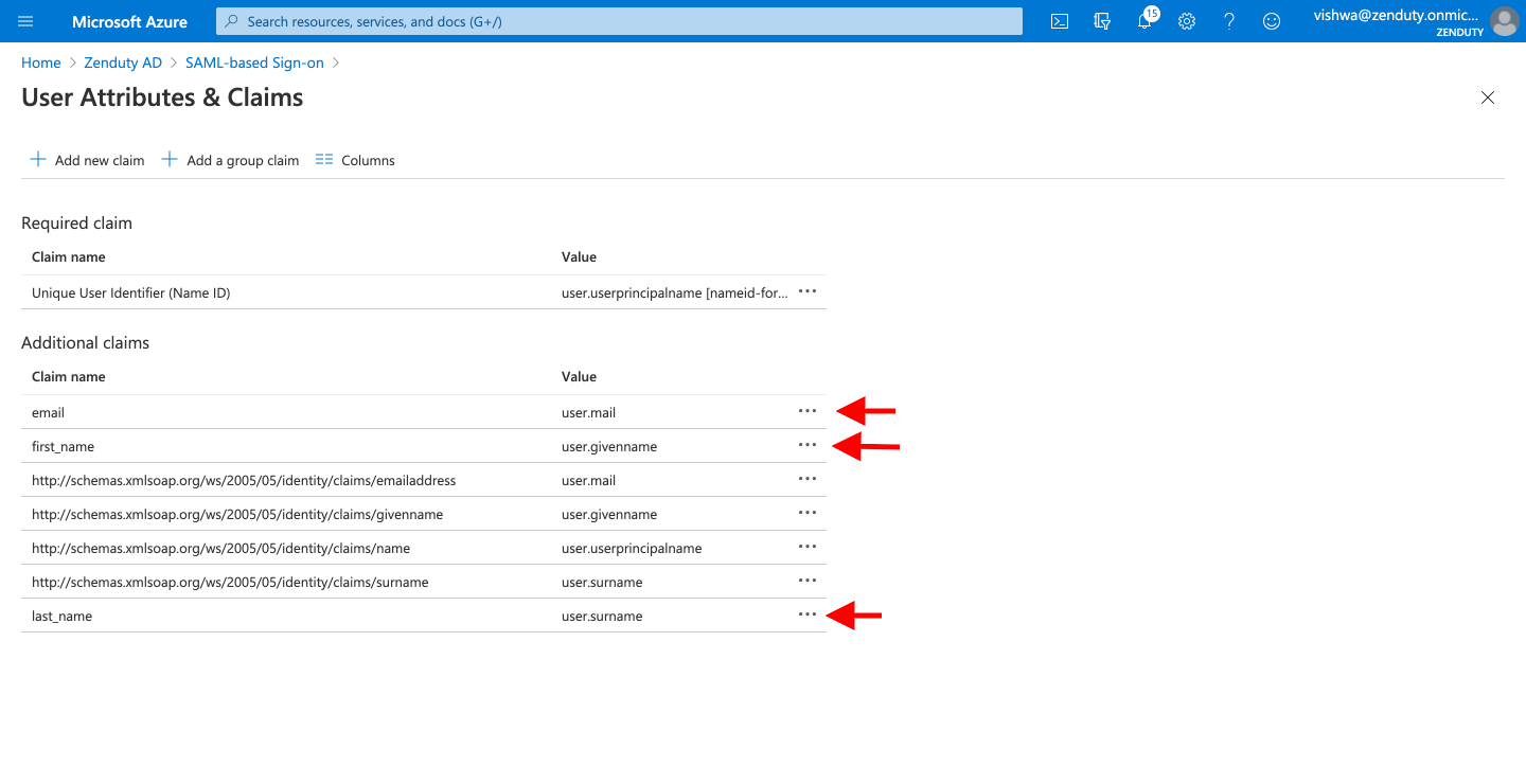 - Click on Edit next to User Attributes & Claims. You need to create three new claims.