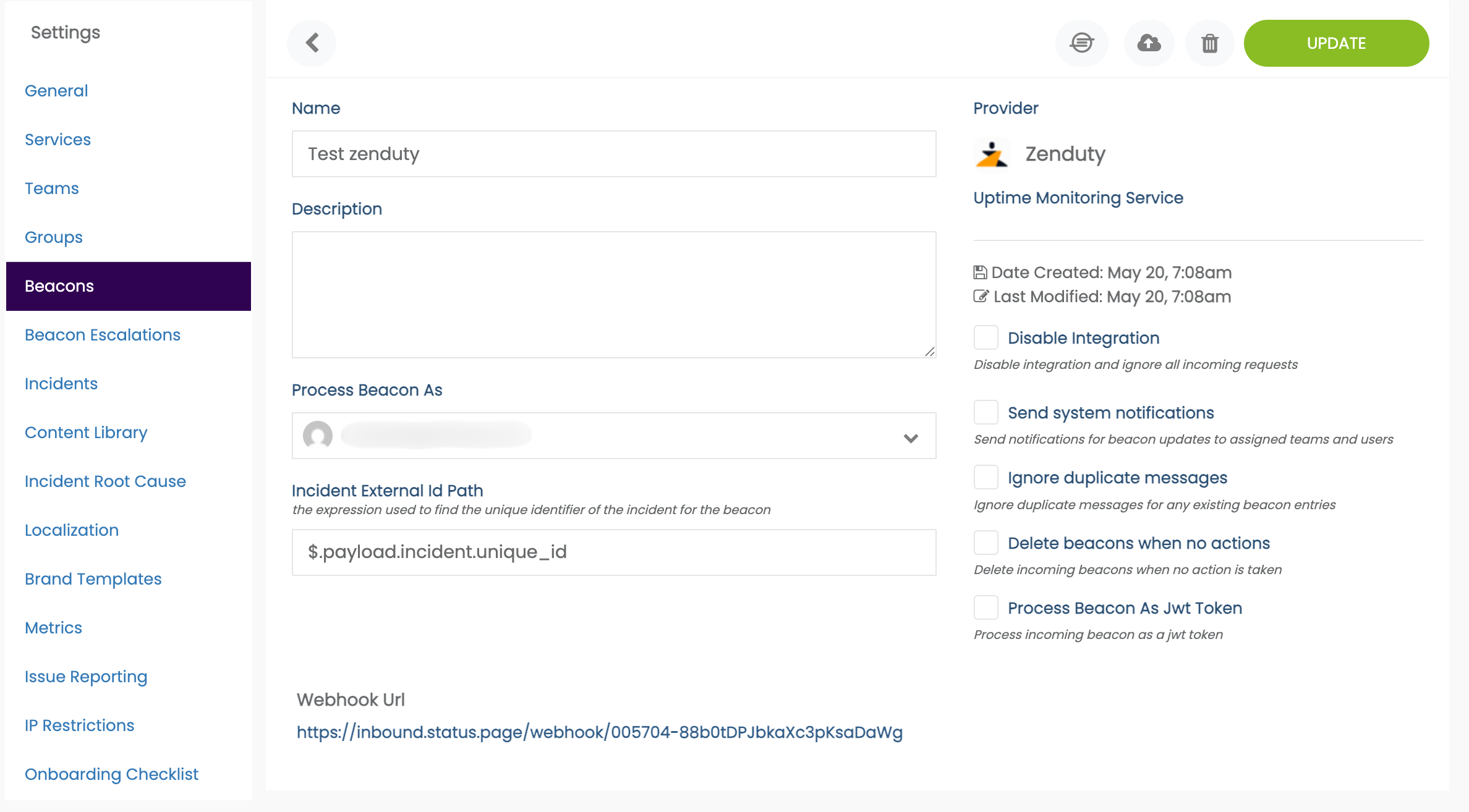 - After saving, you will see the Webhook URL.Please copy and save this URL for future use during the StatusCast configuration.