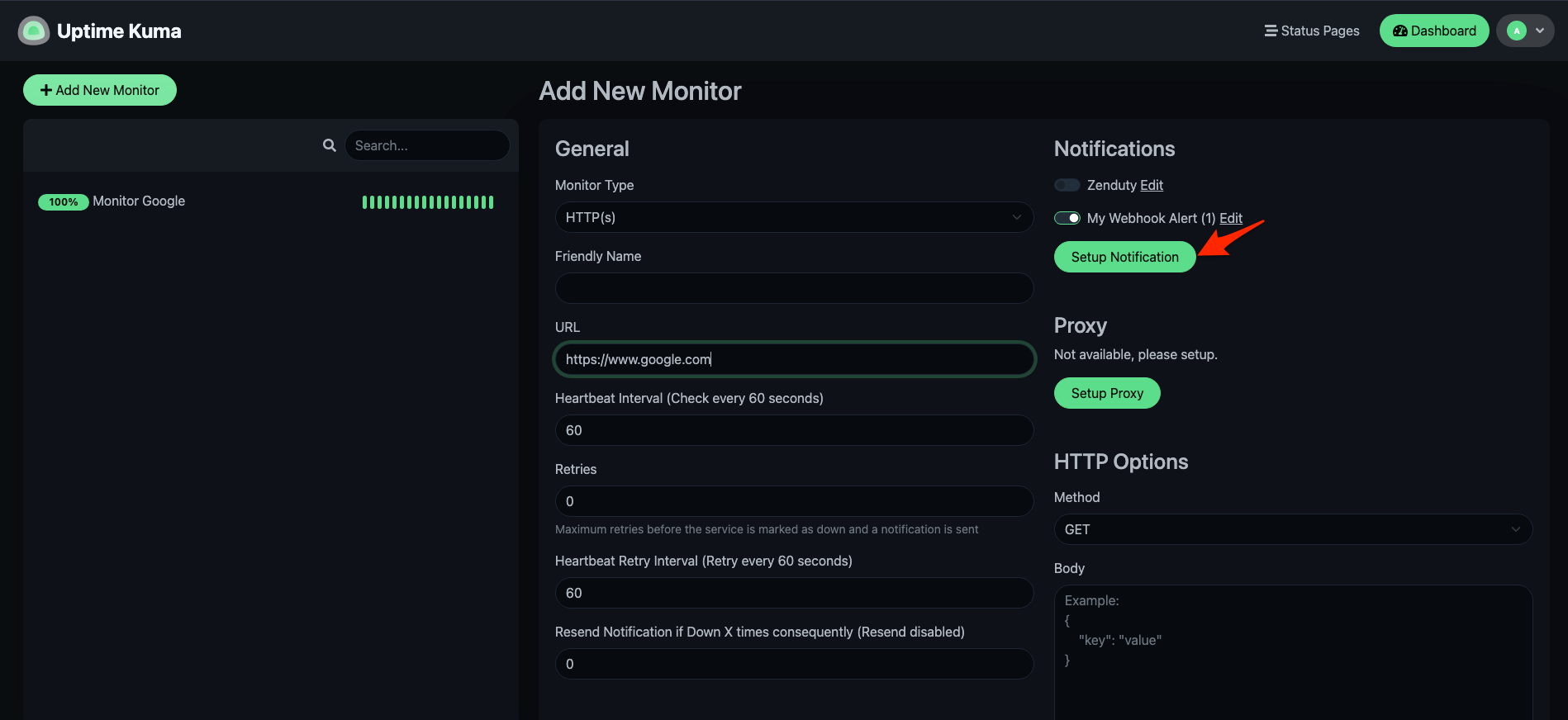 - Login to your Uptime Kuma. Go to your dashboard. On the left panel, click on Add New Monitor or Edit Monitor.
