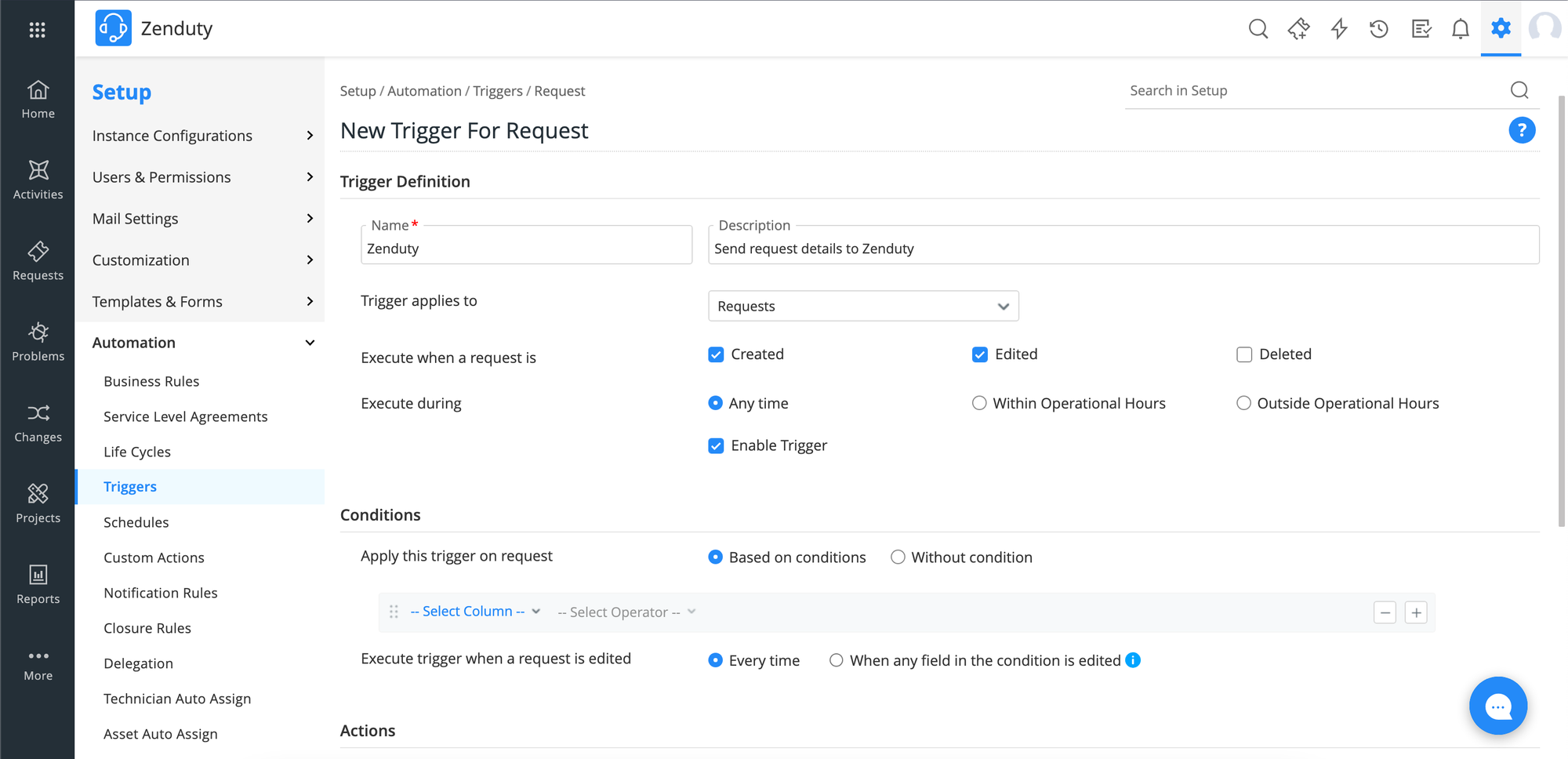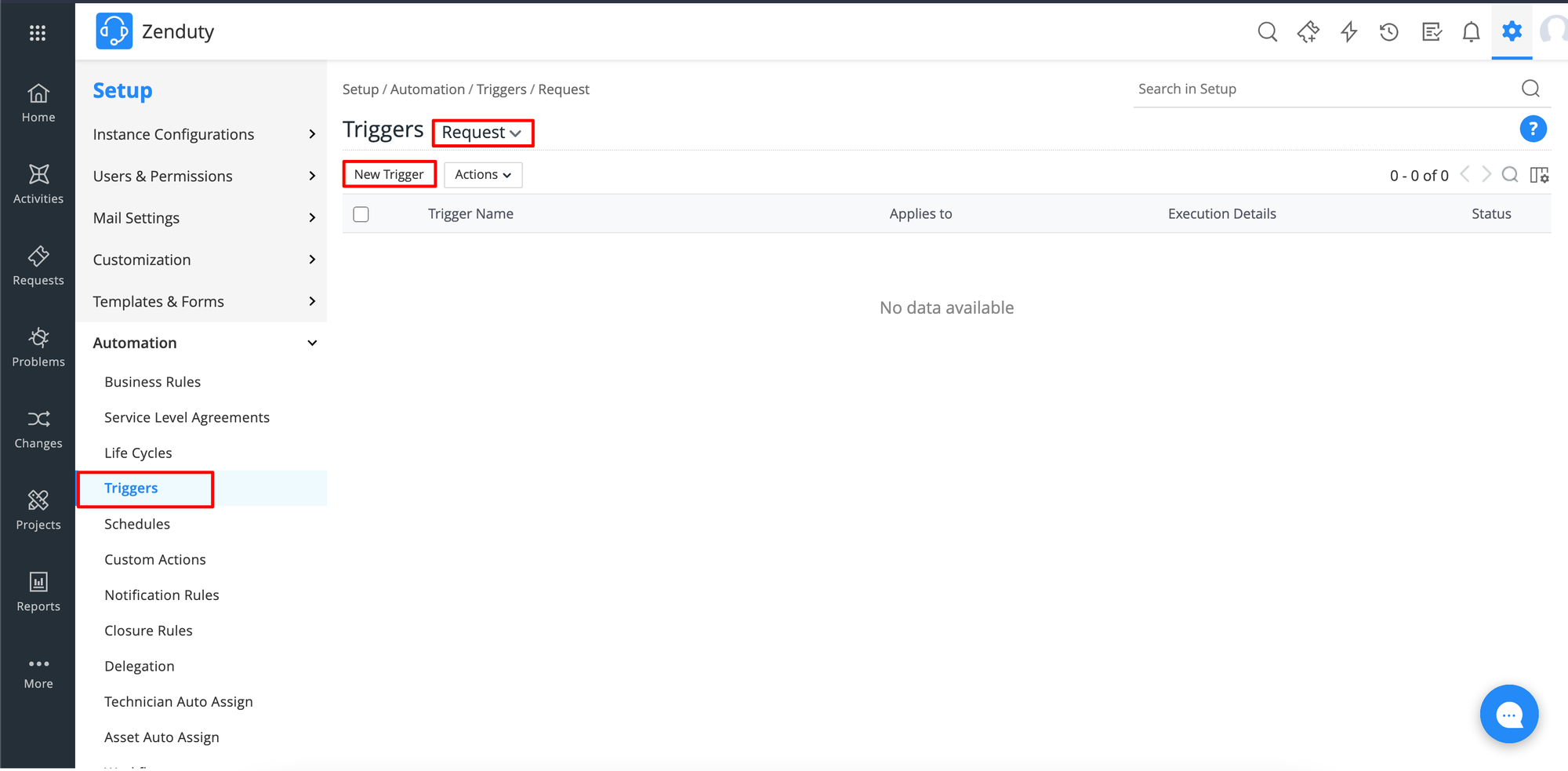 5. In the Automations page, click on the Triggers tab. Select the trigger to which you want to attach the custom action or create a new trigger as required.