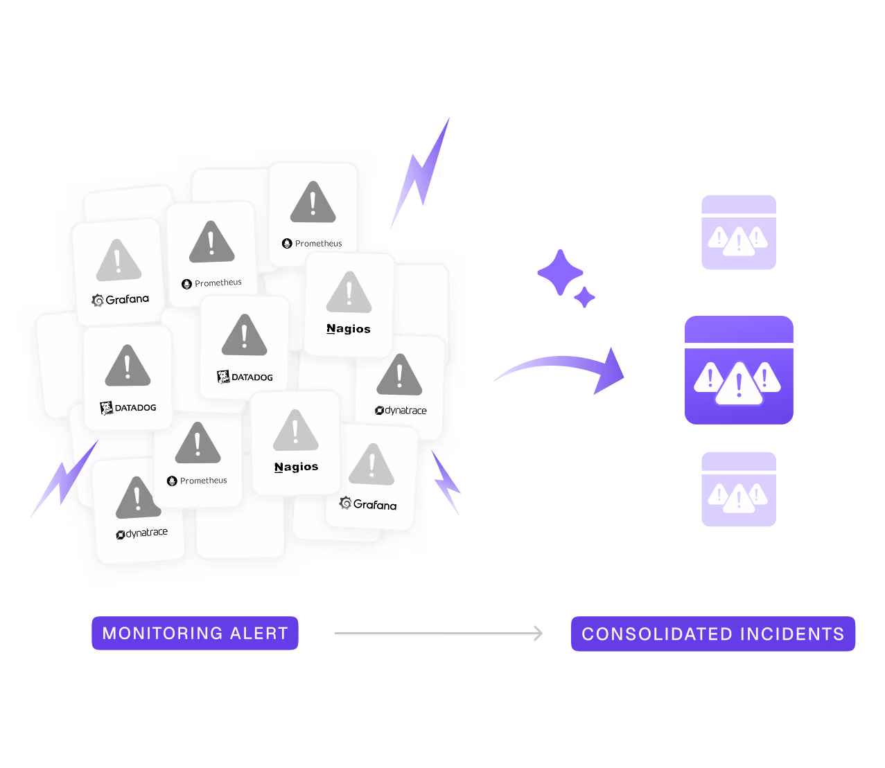Xurrent IMR automatically detects and correlates related alerts across your monitoring and observability stack. Duplicates and false positives are filtered out, giving your engineers a single, clear incident view.