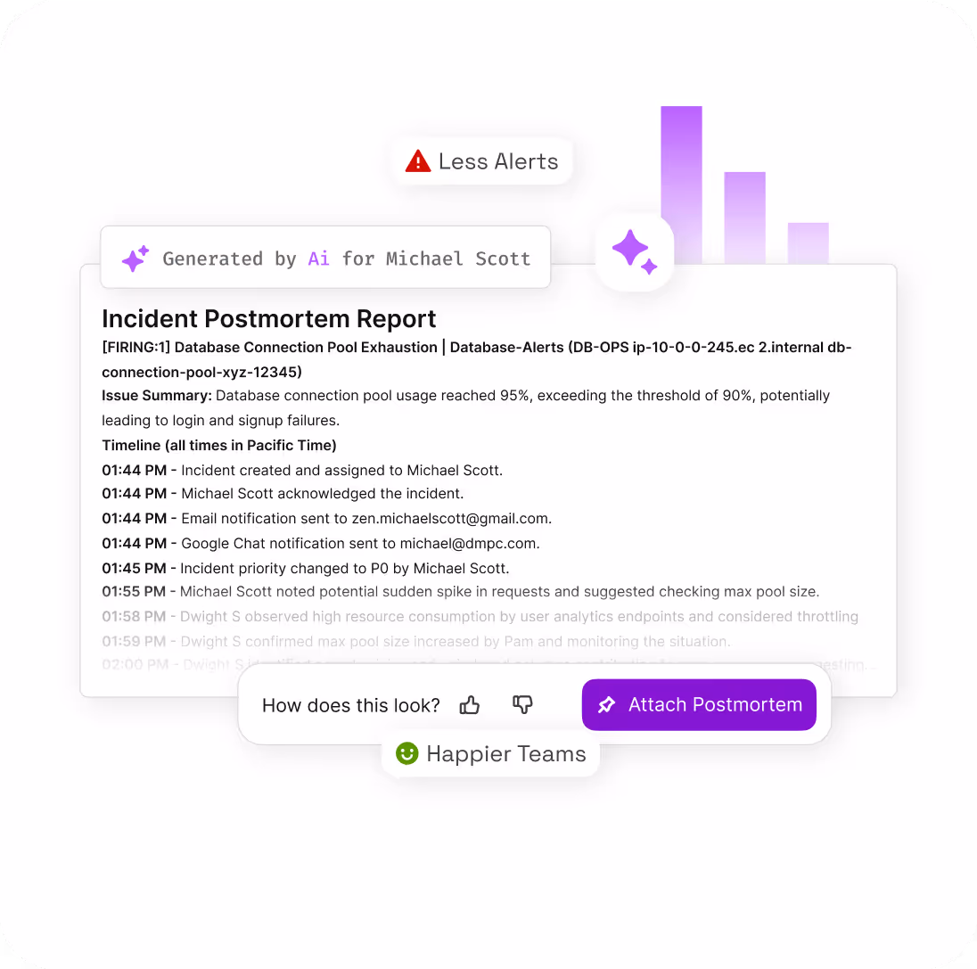 - Automated timeline reconstruction and blameless postmortem templates accelerate learning