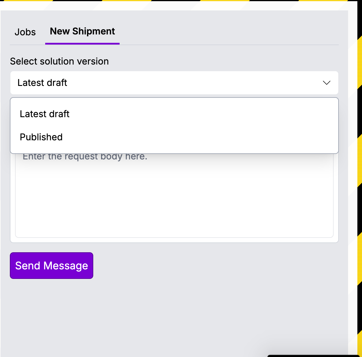 The New Shipment tab allows you to manually trigger the runbook by sending test data (payloads). This is useful for validating logic, debugging issues, and simulating real-world scenarios.