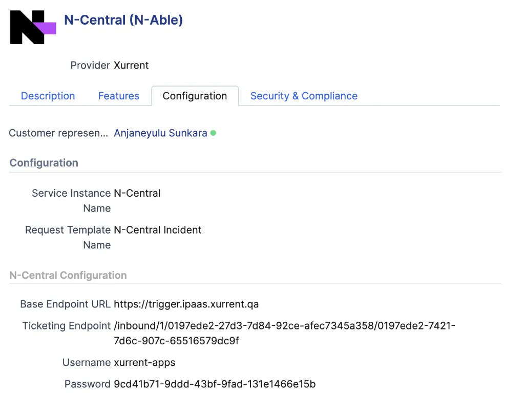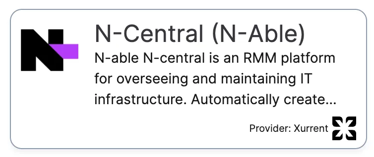 N-Central (N-Able) connection enables monitoring and management integration between Xurrent and N-Central.