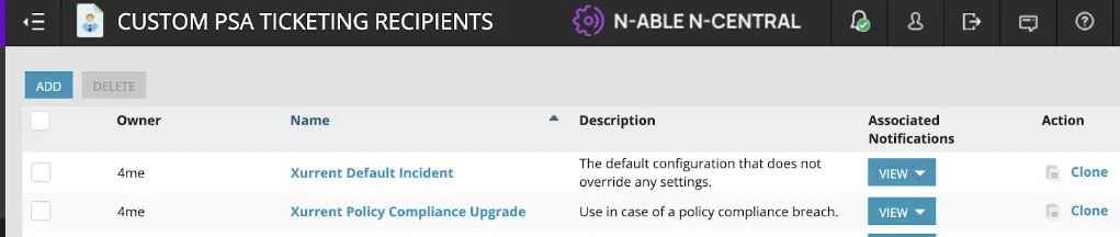 - This service instance will be used for tickets passed from N-Central to Xurrent.
