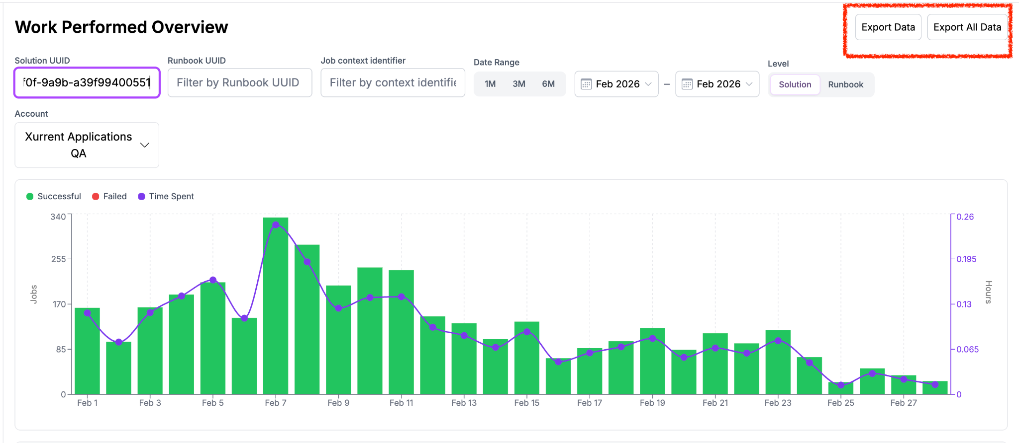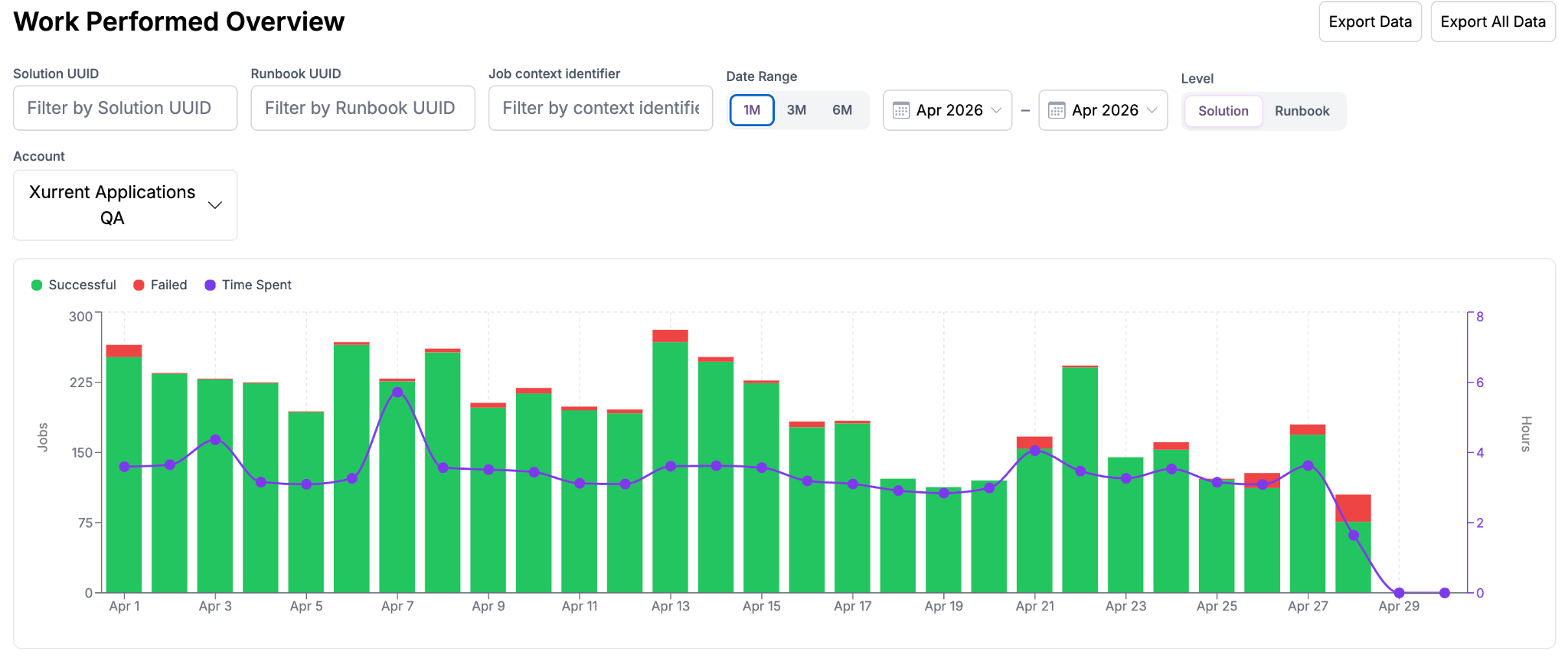 - Global Filters: Filter by Solution UUID, Runbook UUID, or a specific Job context identifier to find specific automation instances.