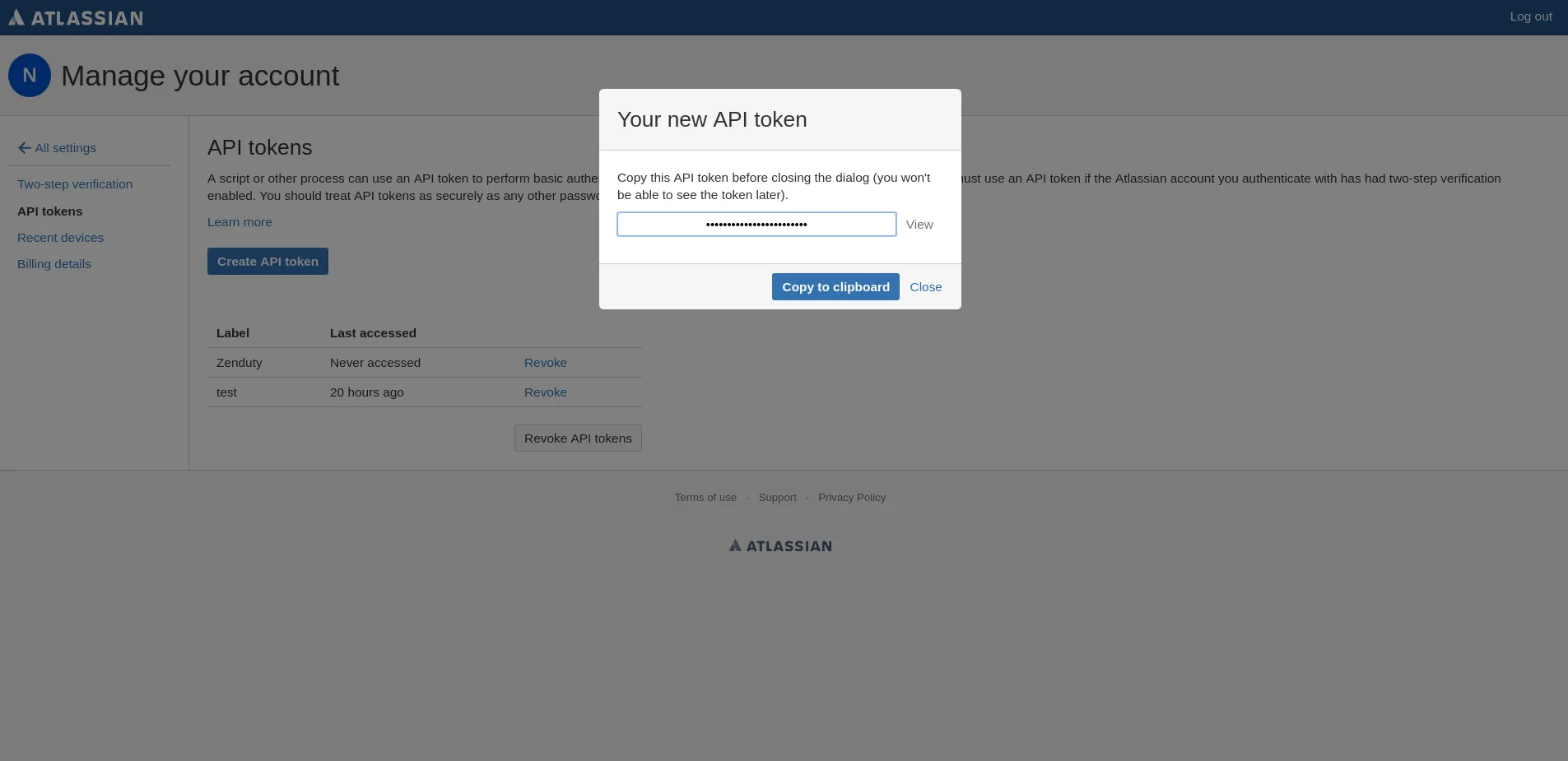 - Logging in to https://id.atlassian.com/manage/api-tokens