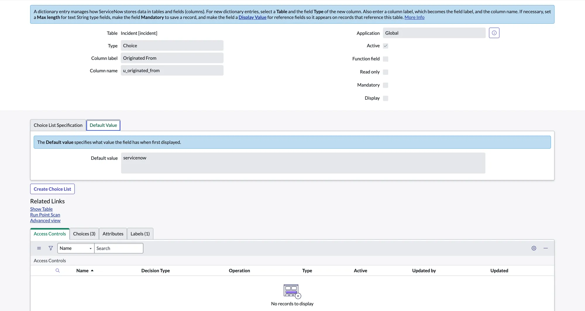 - Column label: Originated From Type: Choice, Default: