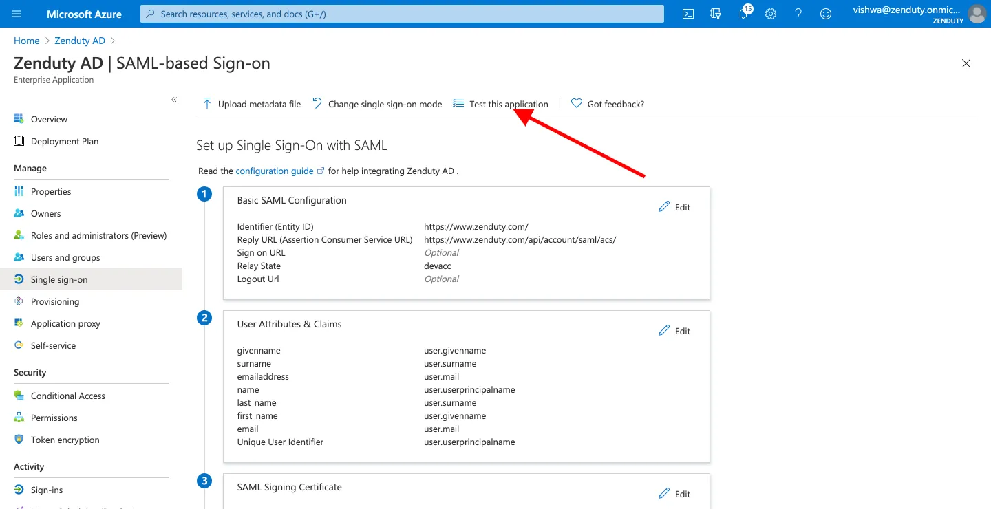 - To test the setup, logout from Xurrent IMR. Go back to the Single Sign-on page from the left vertical navigation panel in your Azure AD tab. Click on Test this application; on the top. Click on Sign in as current user. Authenticate your Azure account. You should be redirected to your Xurrent IMR page.