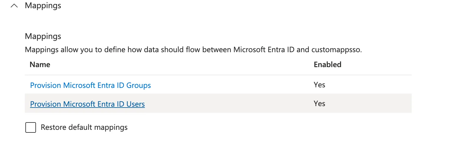 - Under the Mappings section, click on Provision Microsoft Entra ID Users.