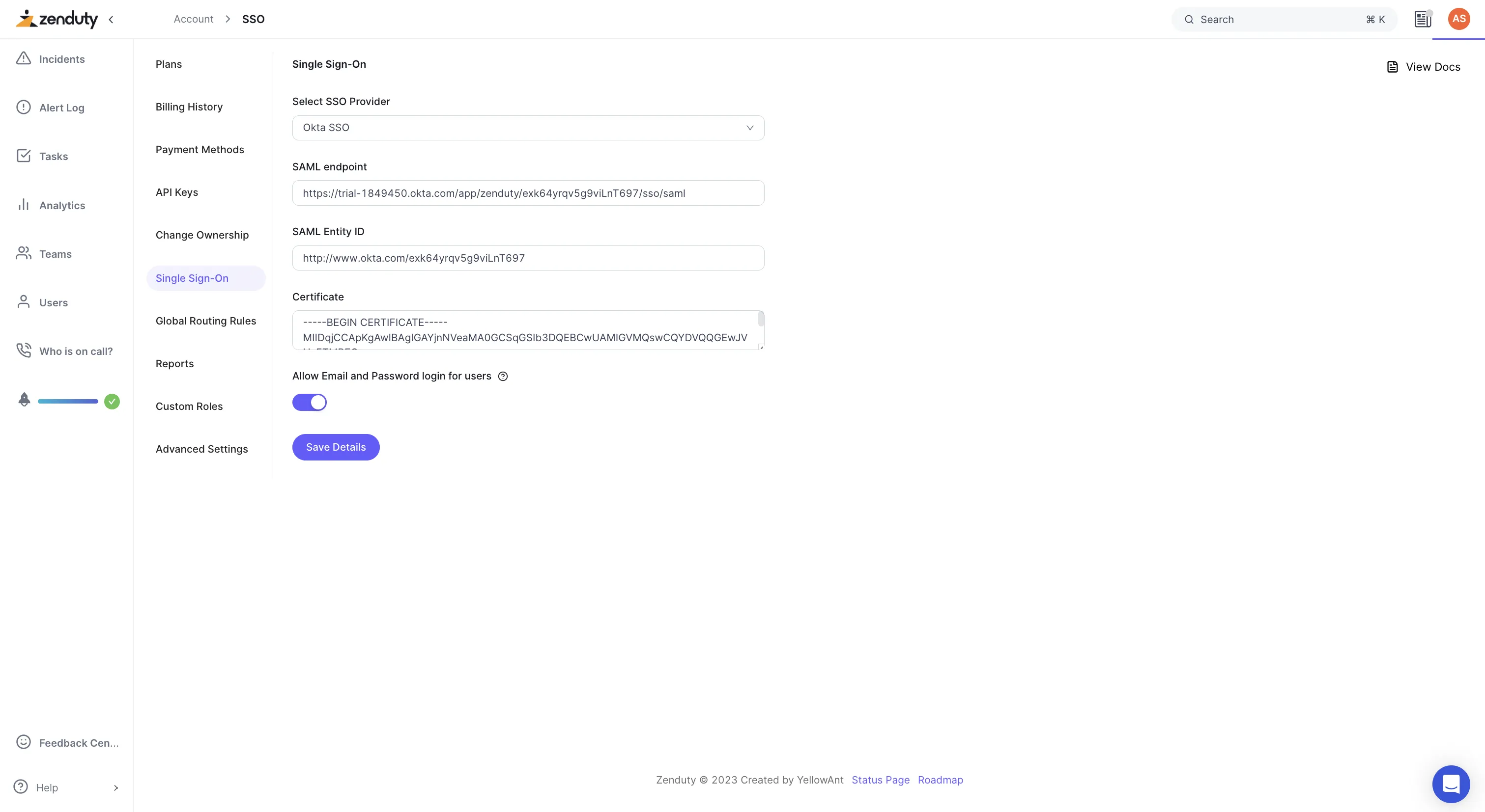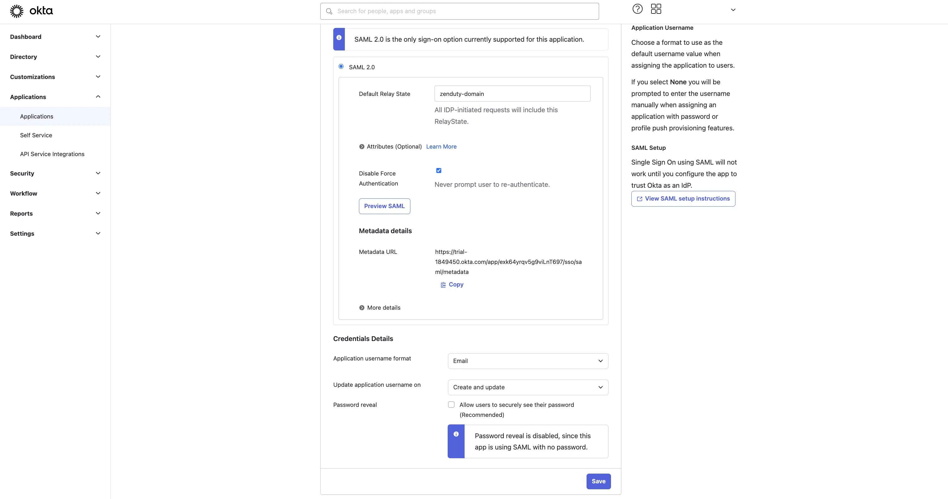 - Click on Save Integration to complete your SSO setup.