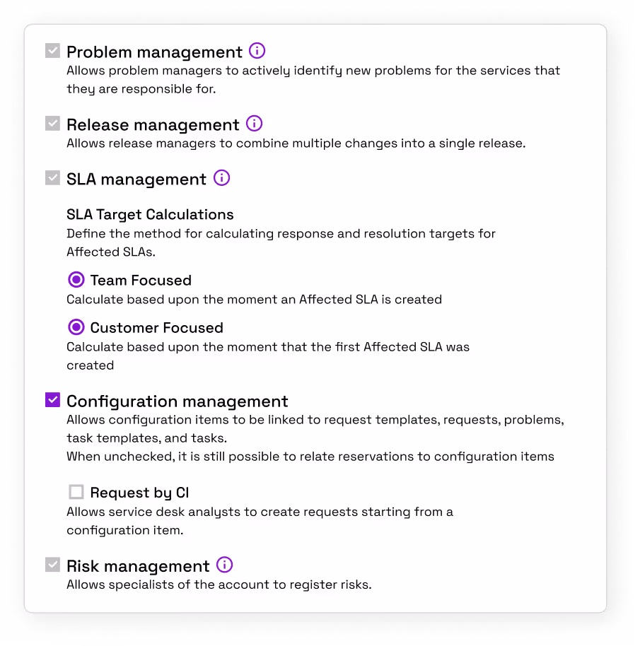 Reliable service operations depend on structured processes. Xurrent supports core ITIL-aligned practices including incident management, change management, problem management, and request management. These capabilities help financial institutions maintain operational stability while reducing downtime and service disruptions.