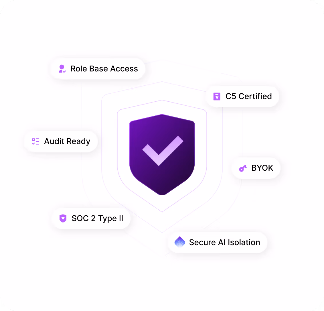 - ISO 27001/27018, SOC 2 Type II, and C5 certified — compliance built into the platform, not added after