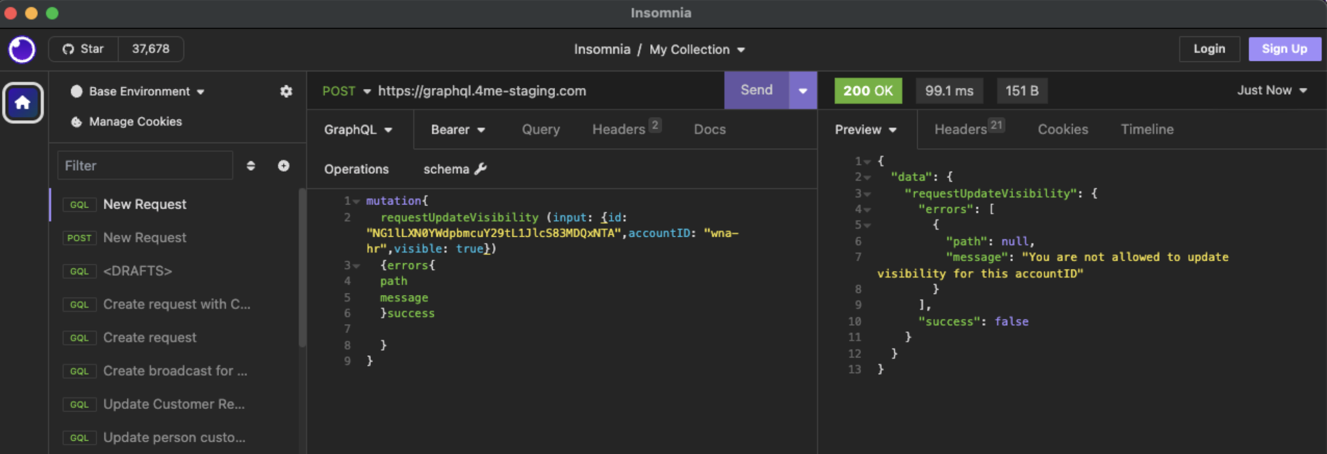 With this mutation, administrators can remove visibility for affected request accounts to ensure requests are only accessible to the intended parties. Visibility changes are subject to the following conditions: